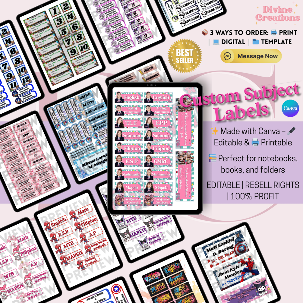 Make your school or work setup ✨aesthetic and organized✨ with these editable subject labels! Whether you're a student, teacher, planner lover, or reseller — these labels are perfect for both print and digital use.